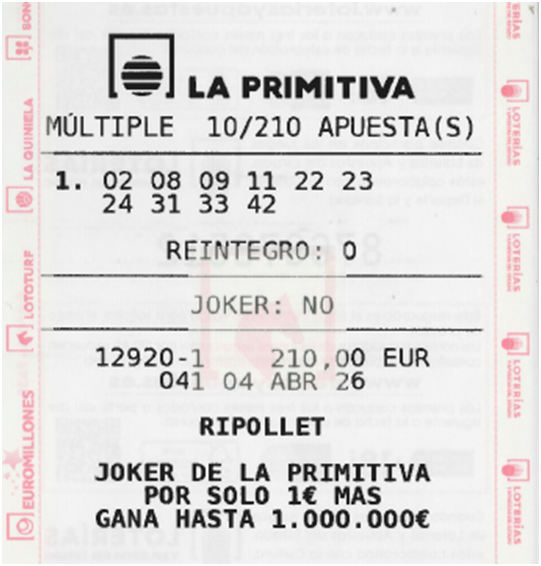 Combinaciones y Recaudación PEÑA para el Sorteo de LA PRIMITIVA