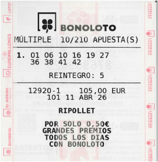 Combinaciones y Recaudación PEÑA para el Sorteo de BONOLOTO