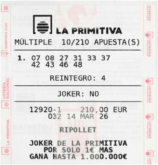 Combinaciones y Recaudación PEÑA para el Sorteo de LA PRIMITIVA