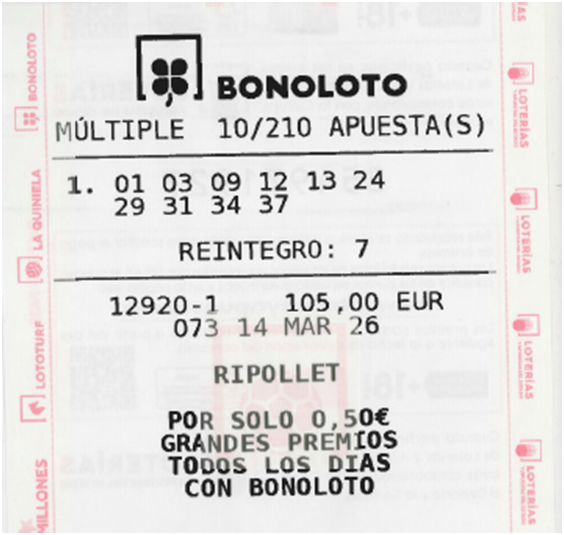 Total recaudación para este sorteo: 105€