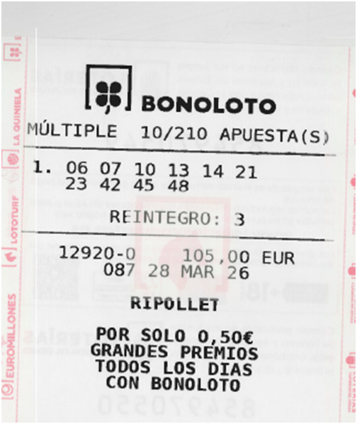 Total recaudación para este sorteo: 105€