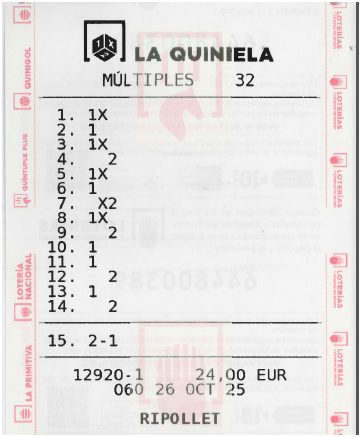 Sorteo de Quiniela Jornada 16 (25/10/25 – 26/10/25)