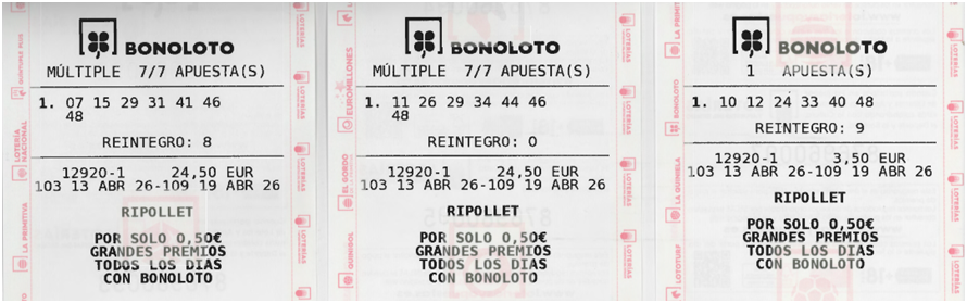 Combinaciones y Recaudación PEÑA para el Sorteo de BONOLOTO