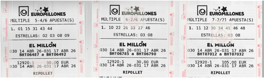 Combinaciones y Recaudación PEÑA para el Sorteo de EUROMILLONES