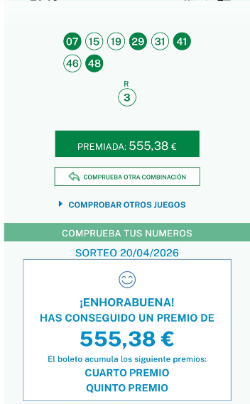 | Múltiple 8 07-15-19-29-31-41-46-48 | Reintegro 3 |