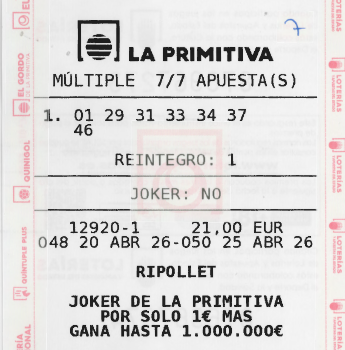 | Múltiple 7 01-29-31-33-34-37-46 | Reintegro 1 |