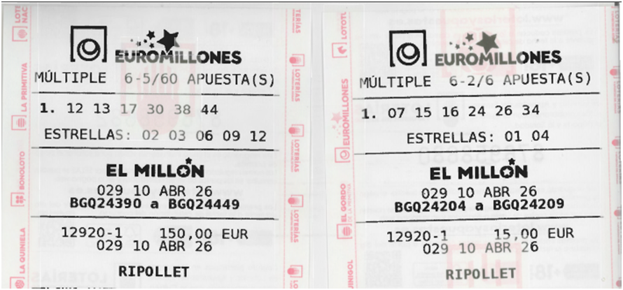 Total recaudación para este sorteo: 165€