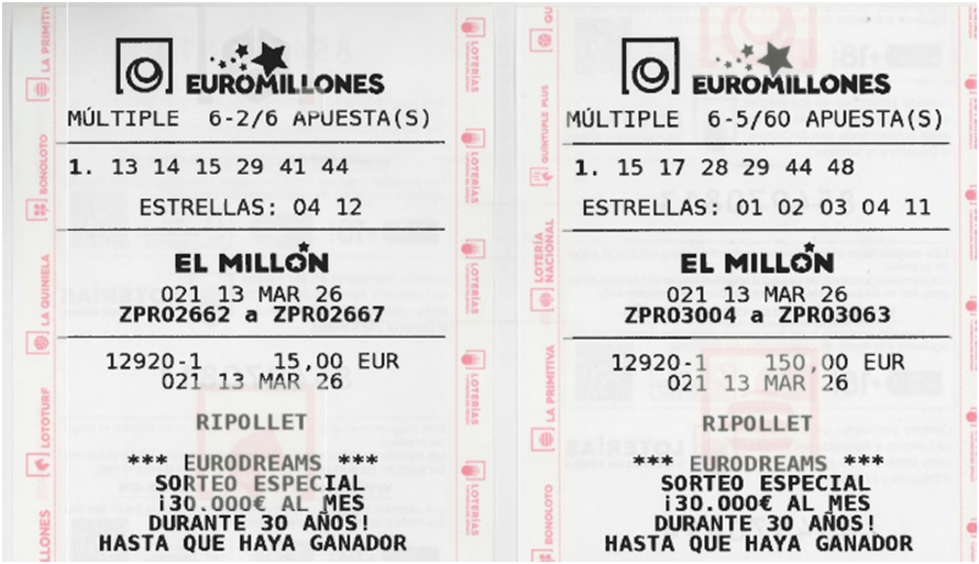Total recaudación para este sorteo: 165€